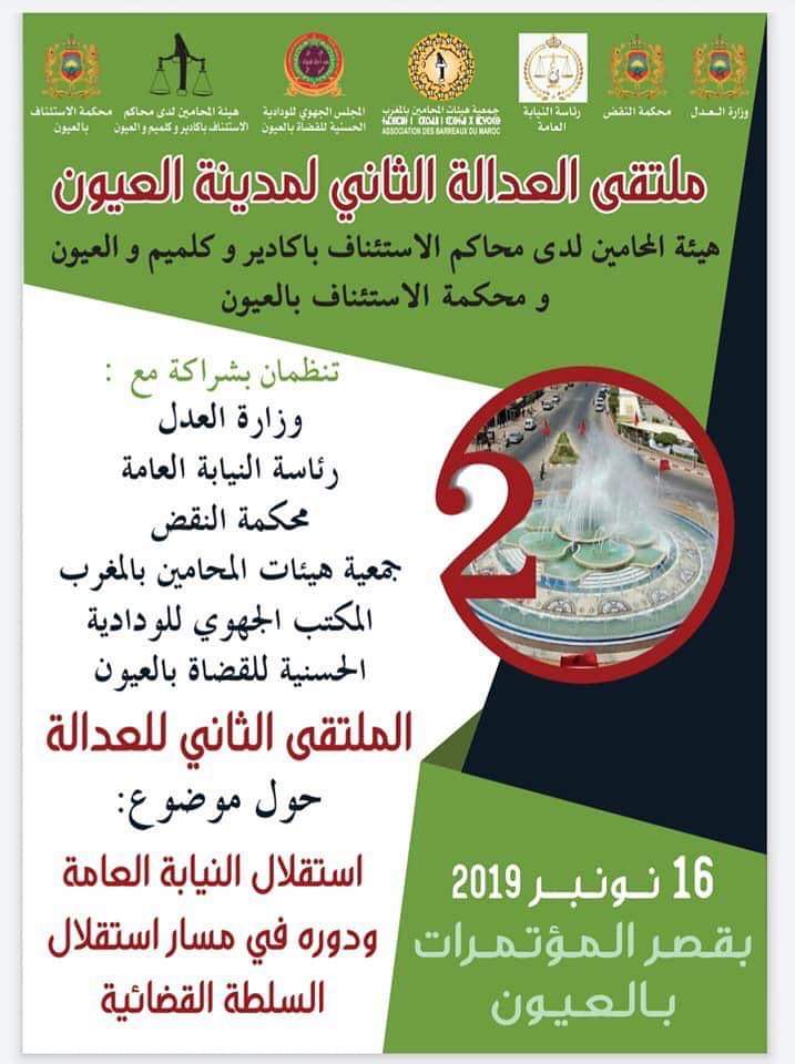 åÐÇ ÇáãáÊÞì ÇáÐí íäÙã Ýí äÓÎÊå ÇáËÇäíÉ ÈÇáÚíæä¡ ÈÔÑÇßÉ ãÚ æÒÇÑÉ ÇáÚÏá æãÍßãÉ ÇáäÞÖ æÑÆÇÓÉ ÇáäíÇÈÉ ÇáÚÇãÉ¡ æÌãÚíÉ åíÆÇÊ ÇáãÍÇãíä ÈÇáãÛÑÈ æÇáãÌáÓ ÇáÌåæí ááæÏÇÏíÉ ÇáÍÓäíÉ ááÞÖÇÉ ÈÇáÚíæä¡ æåíÆÉ ÇáãÍÇãíä áÏì ãÍÇßã ÇáÇÓÊÆäÇÝ ÈÃßÇÏíÑ æßáãíã æÇáÚíæä¡ æãÍßãÉ ÇáÇÓÊÆäÇÝ ÈÇáÚíæä¡ íÑæã ÇáÊÃÓíÓ áäÔÇØ ãÚÑÝí ÍæÇÑí Óäæí ÈãÏíäÉ ÇáÚíæä íÚäì ÈÇáÔÃä ÇáÞÇäæäí¡ ÊÊã ãä ÎáÇáå ÏÑÇÓÉ æãäÇÞÔÉ ãæÇÖíÚ ÞÇäæäíÉ ãÊÕáÉ ÈãíÏÇä ÇáÚÏÇáÉ ÈãÔÇÑßÉ ÎÈÑÇÁ ÞÇäæäííä æãÍÇãíä æÞÖÇÉ æããÇÑÓíä æÅÚáÇãííä æãåÊãíä ÈÇáÔÃä ÇáÞÇäæäí.