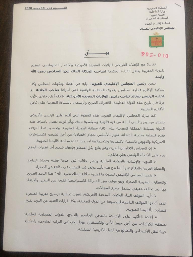 ÚÞÈ ÇáÅÚáÇä ÇáÊÇÑíÎí ááæáÇíÇÊ ÇáãÊÍÏÉ ÇáÃãÑíßíÉ ÈÇÚÊÑÇÝåÇ ÈÓíÇÏÉ ÇáãÛÑÈ Úáì ÇáÕÍÑÇÁ¡ ÚÈÑ ÑÆíÓ ÇáãÌáÓ ÇáÅÞáíãí ááÚíæä ãæáæÏ ÚáæÇÊ¡ äíÇÈÉ Úä ÃÚÖÇÁ æãßæäÇÊ ÇáãÌáÓ¡ æßÐÇ ÓÇßäÉ ÇáÅÞáíã ÞÇØÈÉ¡ Úä ÊËãíäå áãÖÇãیä æÝÍæì ÇáãßÇáãÉ ÇáåÇÊÝíÉ ÇáÊí ÃÌÑÇåÇ ÕÇÍÈ ÇáÌáÇáÉ ÇáÑÆíÓ ÇáÃãÑíßí ÏæäÇáÏ ÊÑÇãÈ¡ æÇáÐí ÃÚáä ÎáÇáåÇ ÇáÇÚÊÑÇÝ ÇáÕÑíÍ æÇáÑÓãí ÈÇáÓíÇÏÉ ÇáãÛÑÈíÉ Úáì ßÇãá ÇáÃÞÇáíã ÇáãÛÑÈíÉ.