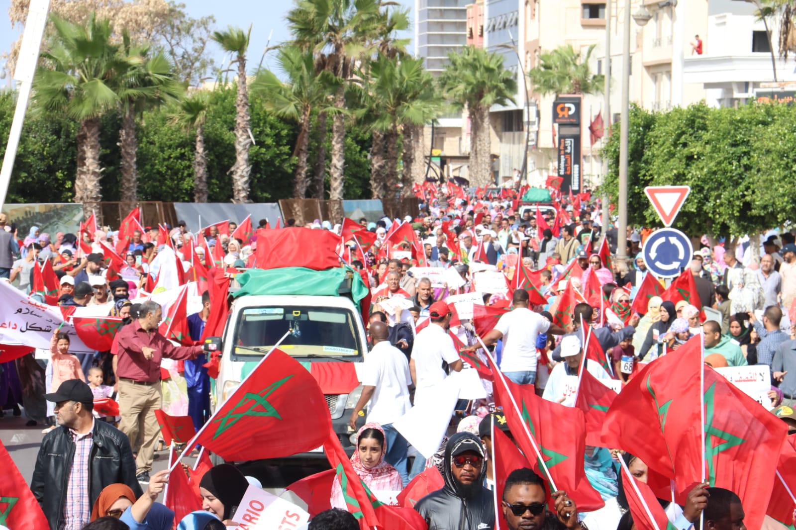 ÎÑÌÊ ãÏíäÉ ÇáÚíæä ÕÈÇÍ Çáíæã ÇáÃÍÏ¡ Úä ÈßÑÉ ÃÈíåÇ Ýí ãÓíÑÉ ãáíæäíÉ ÍÇÔÏÉ ÞÇÏåÇ ÑÆíÓ ÇáãÌáÓ ÇáÌãÇÚí ááÚíæä ÇáÓíÏ ãæáÇí ÍãÏí æáÏ ÇáÑÔíÏ¡ ãÑÝæÞÇ ÈÇáäÇÆÈ ÇáÇæá áÑÆíÓ ÇáãÌáÓ ÇáÓíÏ ÓíÏí ãÍãÏ æáÏ ÇáÑÔíÏ¡ æÈÍÖæÑ ãäÊÎÈíä æÔÎÕíÇÊ ãÏäíÉ æÚÓßÑíÉ æÔíæÎ æÃÚíÇä ÇáÞÈÇÆá ÇáÕÍÑÇæíÉ¡ æÍÔæÏ ÛÝíÑÉ ãä ÓÇßäÉ ãÏíäÉ ÇáÚíæä¡ æÐáß ááÊäÏíÏ ÈÇáÇÚÊÏÇÁ ÇáÂËã ÇáÐí ÔåÏÊå ãÏíäÉ ÇáÓãÇÑÉ äåÇíÉ ÇáÃÓÈæÚ ÇáÝÇÑØ¡