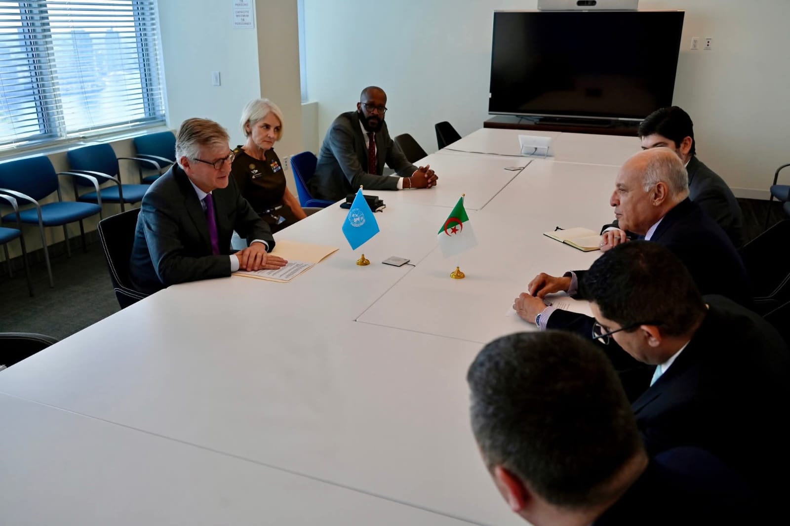 ÃÌÑì æÒíÑ ÇáÎÇÑÌíÉ ÇáÌÒÇÆÑí¡ ÃÍãÏ ÚØÇÝ¡ Çáíæã Ýí äíæíæÑß¡ ãÍÇÏËÇÊ ËäÇÆíÉ ãÚ æßíá ÇáÃãíä ÇáÚÇã ááÃãã ÇáãÊÍÏÉ ÇáãßáÝ ÈÚãáíÇÊ ÇáÓáÇã¡ ÇáÓíÏ Ìæä ÈíÇÑ áÇßÑæÇ¡ æÐáß Úáì åÇãÔ ÃÔÛÇá ÇáÔÞ ÑÝíÚ ÇáãÓÊæì ááÌãÚíÉ ÇáÚÇãÉ ááÃãã ÇáãÊÍÏÉ Ýí ÏæÑÊåÇ ÇáËãÇäíä.