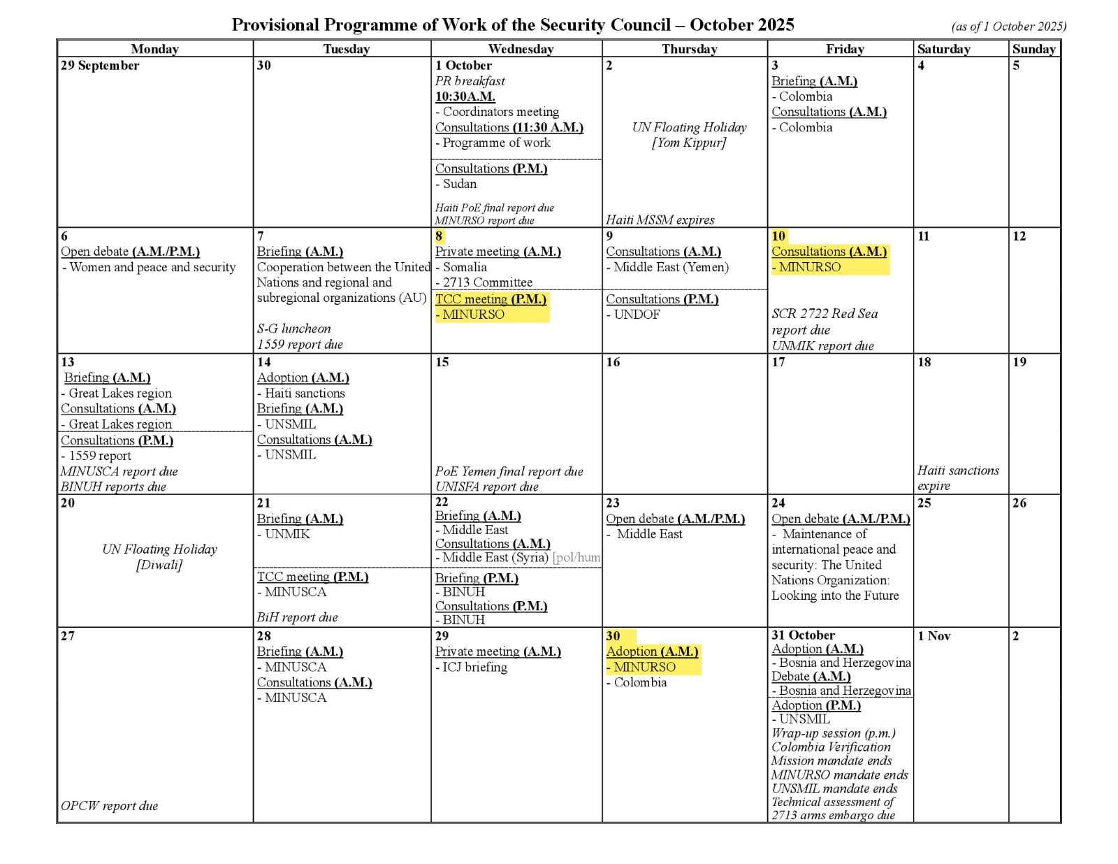 ßÔÝ ãÌáÓ ÇáÃãä ÇáÏæáí ãÓÇÁ Çáíæã ÇáÃÑÈÚÇÁ¡ Úä ÈÑäÇãÌå ÇáÑÓãí áÔåÑ ÃßÊæÈÑ ÇáÌÇÑí¡ ÇáÐí ÊÊÑÃÓå ÑæÓíÇ ÇáÇÊÍÇÏíÉ Ýí ÅØÇÑ ÇáÑÆÇÓÉ ÇáÏæÑíÉ ááãÌáÓ¡ ÍíË ÈÑãÌ ÇáãÌáÓ Ýí ÌÏæá ÃÚãÇáå¡ ËáÇË ÌáÓÇÊ ãÎÕÕÉ áÈÍË ãÓÊÌÏÇÊ ÇáäÒÇÚ Íæá ÇáÕÍÑÇÁ.