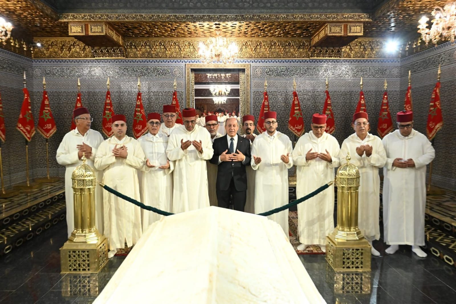 ææÞÝ æÝÏ ãÌáÓ ÇáãÓÊÔÇÑíä ÈÅÌáÇá æÎÔæÚ ááÊÑÍã Úáì ÇáÑæÍ ÇáØÇåÑÉ ááãáß ÇáÑÇÍá ÇáãÛÝæÑ áå ÇáÍÓä ÇáËÇäí ØíÈ Çááå ËÑÇå¡ æÇÓÊÍÖÑ ÃÚÖÇÁ ÇáæÝÏ ÅäÌÇÒÇÊå ÇáÈÇåÑÉ æÌåæÏå ÇáÌÈÇÑÉ Ýí ÓÈíá äåÖÉ æÚÒÉ ÇáããáßÉ æÕæä æÍÏÉ ÃÑÇÖíåÇ¡ ãÊÖÑÚíä Åáì ÇáÚáí ÇáÞÏíÑ ÈÃä íÊÛãÏ ÑæÍå ÇáØÇåÑÉ ÈæÇÓÚ ÑÍãÊå æÃä íÓßäå ÝÓíÍ ÌäÇäå ãÚ ÇáäÈííä æÇáÕÏíÞíä æÇáÔåÏÇÁ æÇáÕÇáÍíä æÍÓä ÃæáÆß ÑÝíÞÇ¡ æÃä íãØÑ ÔÂÈíÈ ÑÍãÊå æÛÝÑÇäå Úáì ÇáãÛÝæÑ áå Çáãáß ãÍãÏ ÇáÎÇãÓ æíäæÑ ÖÑíÍå.