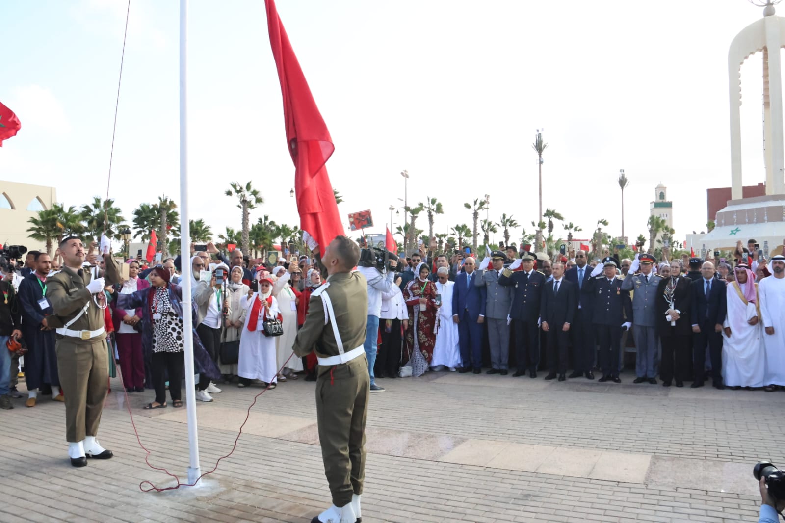 ÔåÏÊ ÓÇÍÉ Çáãト ÈãÏíäÉ ÇáÚíæä ÕÈÇÍ Çáíæã ÇáÎãíÓ¡ ÊäÙíã ãÑÇÓíã ÊÍíÉ ÇáÚáã ÇáæØäí¡ ÇÍÊÝÇáÇð ÈÇáÐßÑì ÇáÎãÓíä ááãÓíÑÉ ÇáÎÖÑÇÁ ÇáãÙÝÑÉ¡ Ýí ÃÌæÇÁ ãÝÚãÉ ÈÑæÍ ÇáæØäíÉ æÇáÇÚÊÒÇÒ ÈÇáÇäÊãÇÁ ááæØä¡ æÊÃÊí åÐå ÇáãÑÇÓíã ÊÎáíÏÇ áÐßÑì ãáÍãíÉ ÎÇáÏÉ Ýí ÊÇÑíÎ ÇáããáßÉ ÇáãÛÑÈíÉ¡ ÌÓÏÊ ÃÓãì ãÚÇäí ÇáÊáÇÍã Èíä ÇáÚÑÔ æÇáÔÚÈ.
